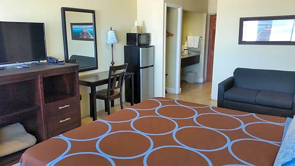 This oceanfront room includes a microwave, small refrigerator, and coffee-making facilities.
